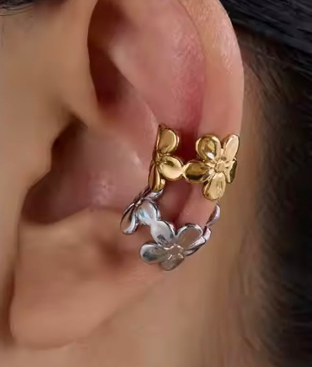 18 k forgyldt, åben ring i stål "blomster"